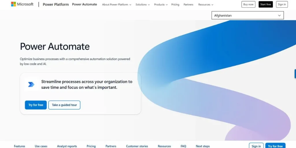 Microsoft Power Automate is a native component of the Microsoft 365 ecosystem that has built-in connections to SharePoint, Teams, Outlook, and Dynamics. The platform is not limited to cloud automation, but also includes robotic process automation (RPA) functionality, which communicates with older desktop code. Human decision points of the approval workflow and business process flows are included in automated sequences.