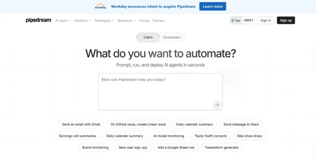 Pipedream provides a developer-friendly experience in automation, giving code a more central role in developing workflows. The platform is compatible with JavaScript, Python, and TypeScript and allows full access to NPM packages to allow developers to use familiar tools and libraries. Instant triggers are offered by real-time event sources and webhooks, whereas full observability (logs and secrets management) ensures deployment production-readiness.