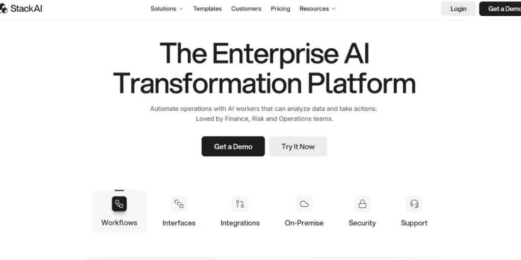 StackAI is specifically an AI-based workflow automation that is enterprise-grade regarding security. The platform combines language models and machine learning systems directly into automation processes, which allows making intelligent decisions and autogenerating content. Ingestion of a knowledge base permits workflows to gather contextual information, which is more relevant and accurate when responding to AI.