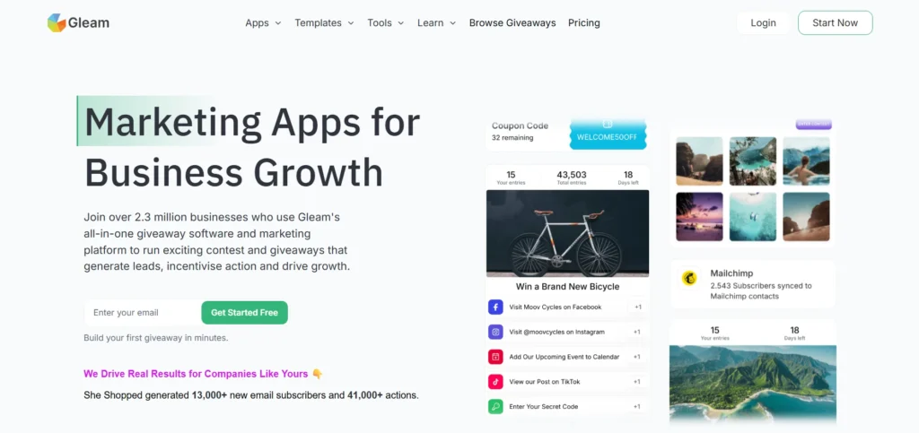 Gleam is a specialized engagement tool that complements traditional social media automation platforms by helping brands manage and scale Instagram promotions. While most automation tools focus on scheduling and analytics, Gleam provides dedicated functionality for running campaigns such as comment-based giveaways, referral contests, and audience engagement initiatives.
